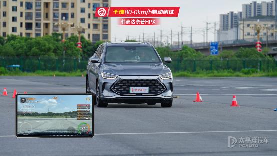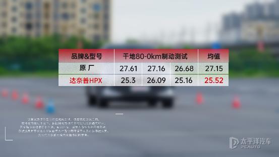 80-0的濕地剎車測試更離譜!原廠胎像踩香蕉皮,達奈普HPX經過多輪測試都穩定在28米,大大提升了雨天的行車安全。