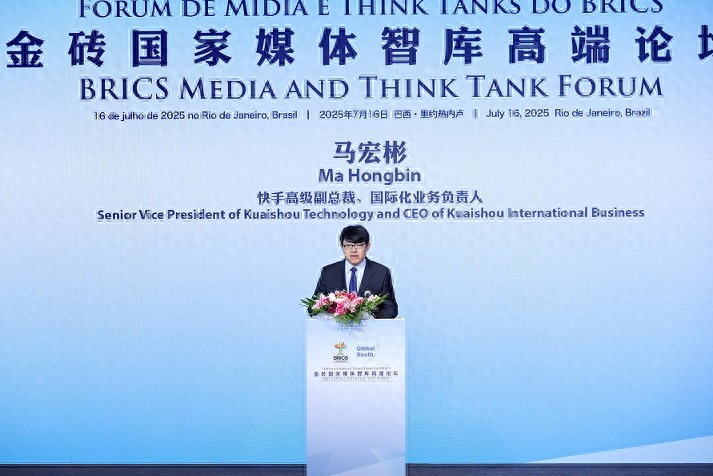 7月16日,以“共創金磚未來 共譜南方新篇”為主題的金磚國家媒體智庫高端論壇在巴西里約熱內盧舉行。快手高級副總裁、快手國際化業務負責人馬宏彬受邀在開幕式發言,深度分享了快手海外版Kwai在巴西市場的探索與實踐,立體展現了中國科技企業對于推動全球南方國家數字經濟發展的觀察和思考。