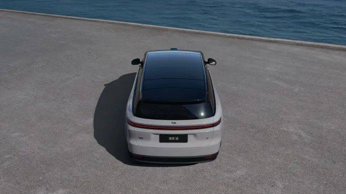 車身尾部,理想i8尾部輪廓與理想增程SUV接近,采用直線式貫穿燈帶,配備車頂后擾流板。區別在于后擋風玻璃和快速向上收窄。