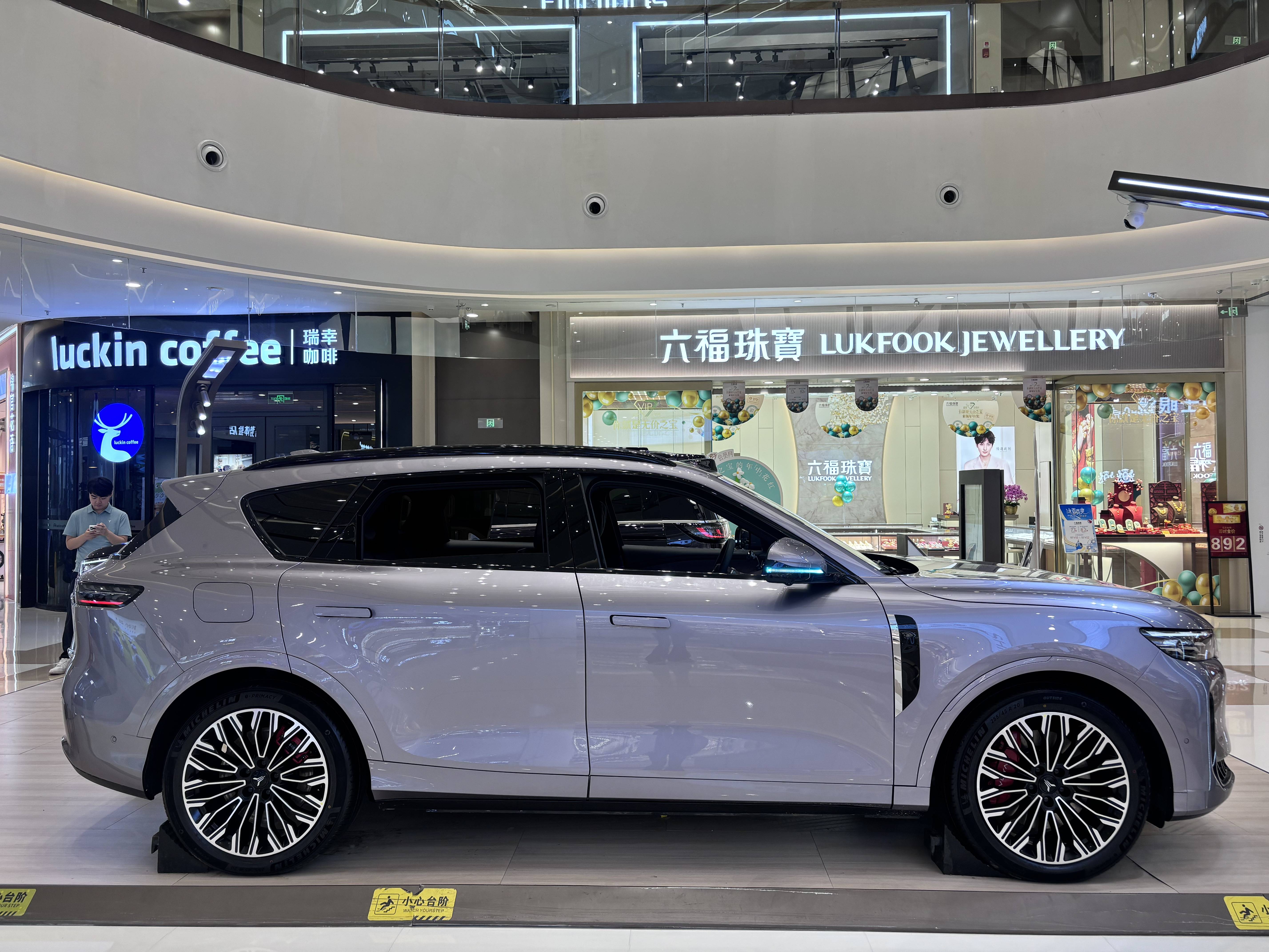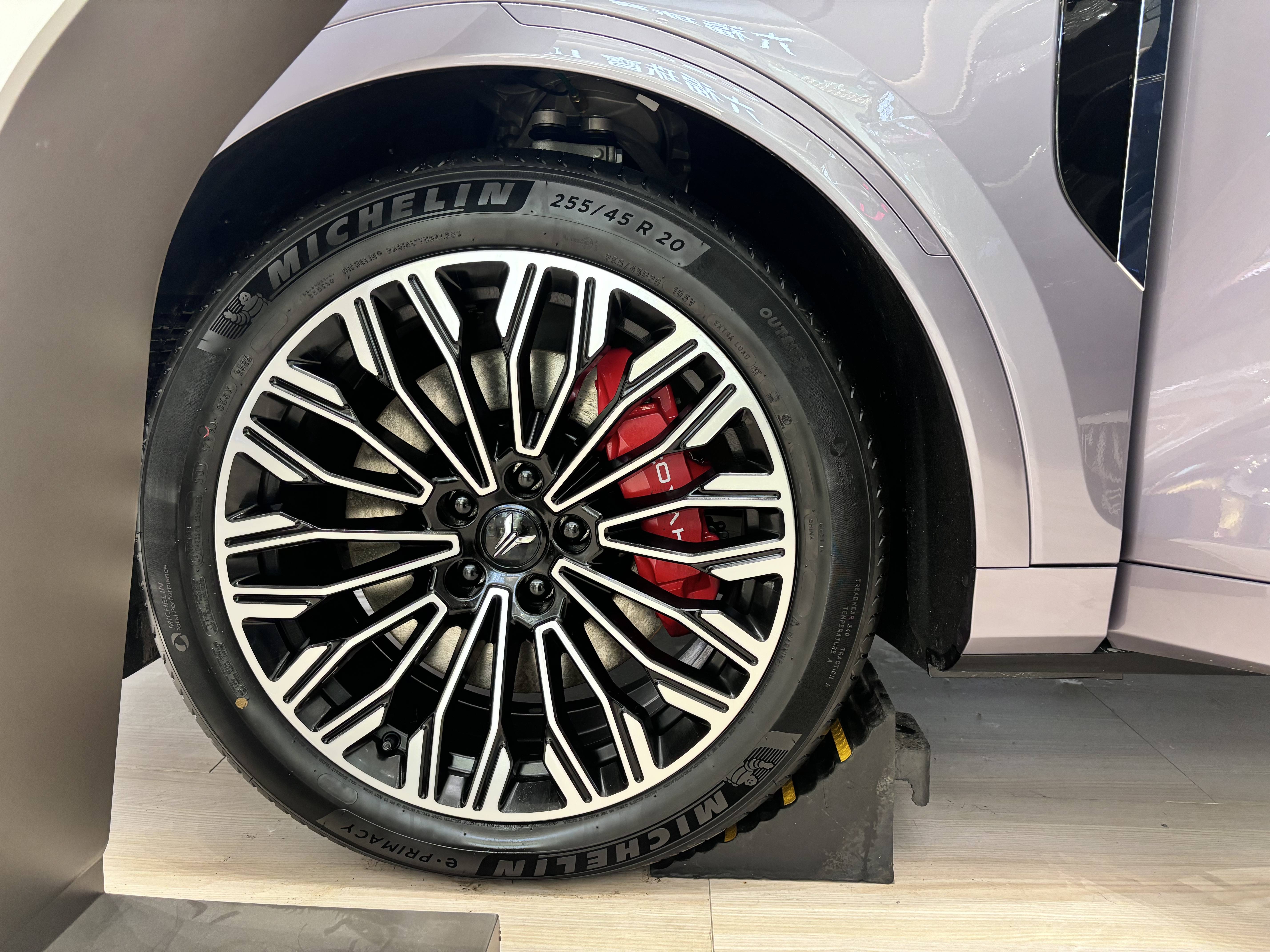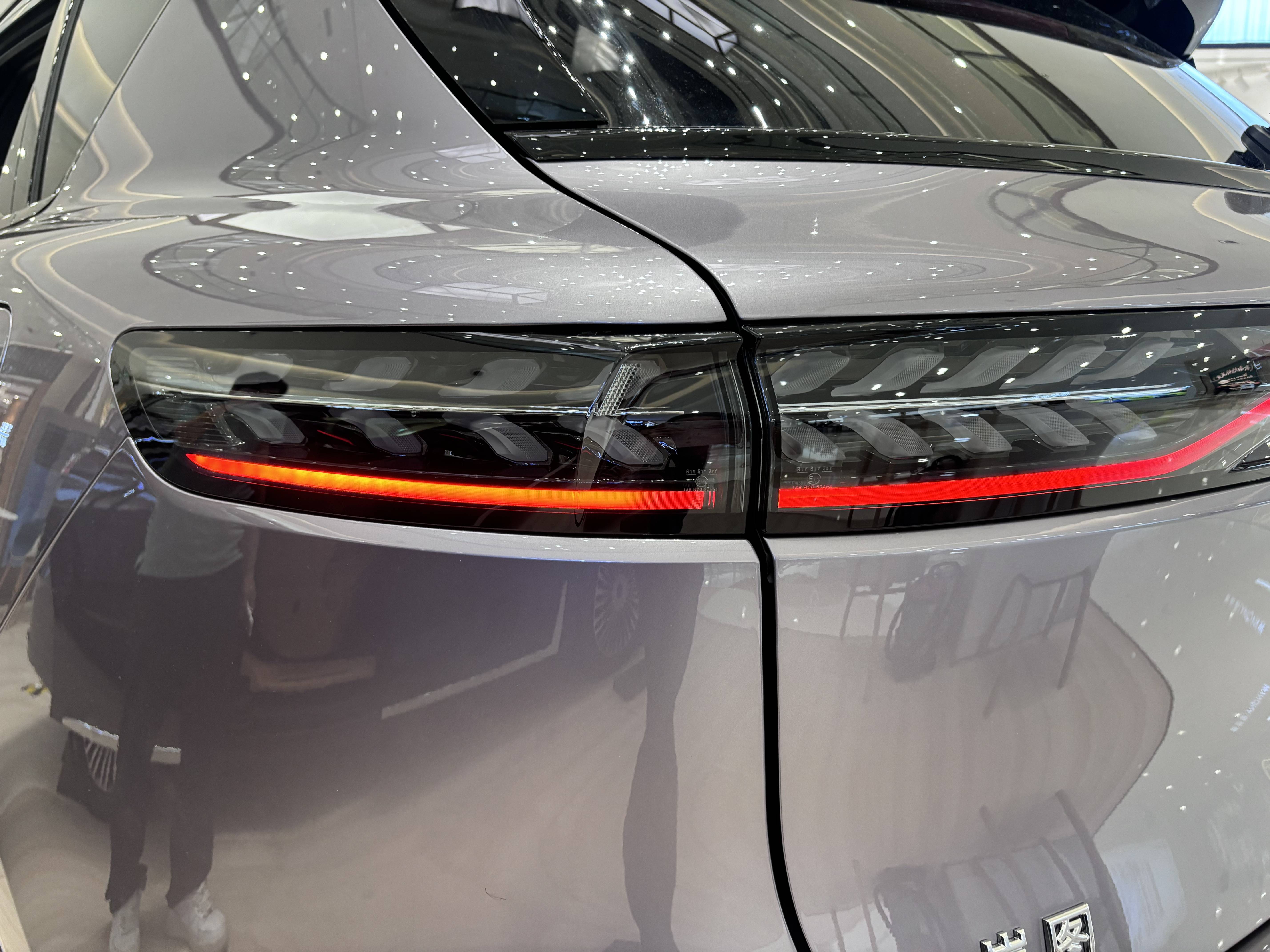 3. 相比老款,新車外觀細節升級明顯,精致度提升。前臉換為城市星空發光格柵,辨識度遠超老款;側面采用隱藏式門把手,D柱改為三角形設計,整車線條更顯流暢;車頂前方裝有192線華為激光雷達,全車配備29顆傳感器且為全系標配;展車搭載20英寸米其林鋁合金輪轂;尾部Logo帶小藍燈,細節處很有特點。