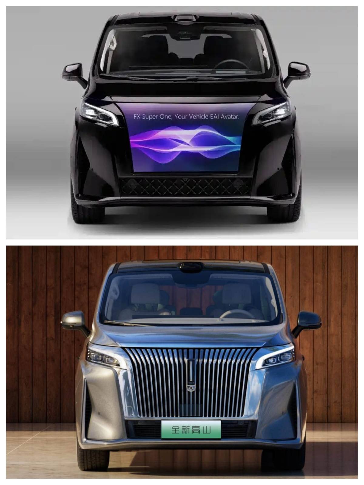 我們看兩車前臉,FX Super One幾乎就是把高山的設計圖紙拿過來,給“前臉”加了一塊“大彩電”,其他輪轂線條如出一轍,不能說高度相似,只能說“完全相同”。