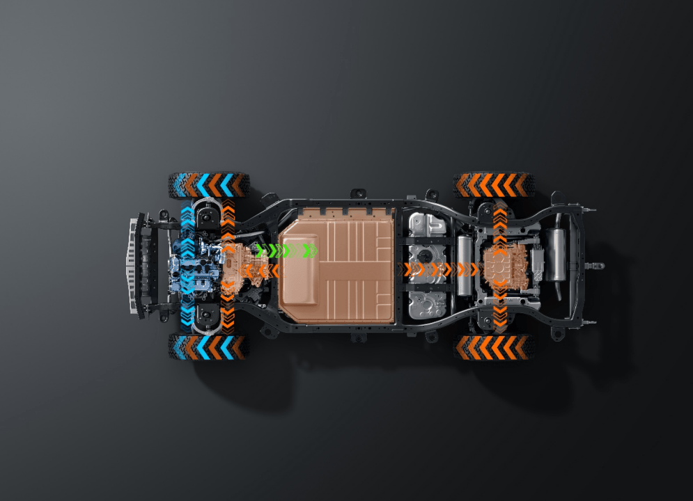 它采用行業首個兩擋縱置11模PHEV架構,具備全時四驅、適時四驅,11種工作模式靈活切換,可燃油、可純電、可插混、可增程。