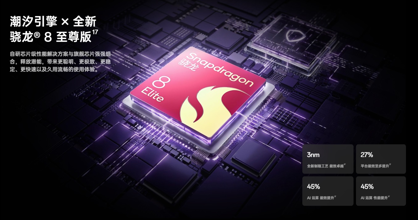 OPPO Find N5搭載了潮汐引擎x驍龍8至尊版,這是自研芯片級性能解決方案與旗艦芯片的強強聯合,使其成為當之無愧的性能天花板。驍龍8至尊版作為當前手機行業的頂級處理器,采用高通全新自研Oryon架構與第二代3nm制程工藝,相比上一代驍龍8Gen3,其CPU單核性能和GPU性能均提升40%以上,同時CPU指令數量減少22.74%、關鍵任務等待時間降低66%、計算效率提升49%,性能表現極為強悍。