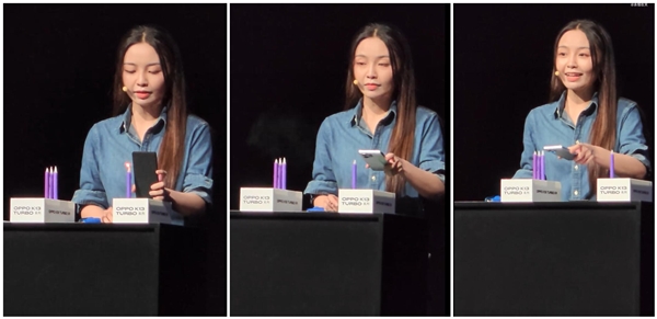 在發布會上,OPPO產品經理通過“吹蠟燭”實驗直觀展示K13 Turbo系列的散熱能力。相比競品微弱的風量,K13 Turbo系列憑借超大風量輕松吹滅一排蠟燭,印證其散熱技術的領先性。