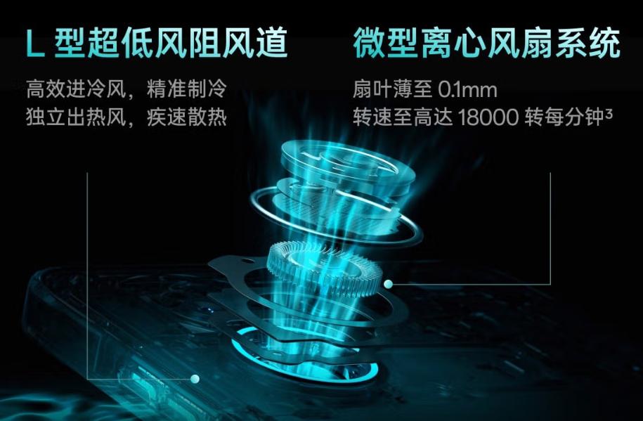 還使用了創新風道設計,采用L型風道、13片0.1mm超薄鰭片和弧形渦舌設計,優化氣流導向,散熱效率提升3倍。