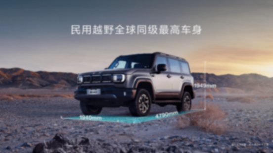 舒適智能升級:傳承經典方盒子造型,4790mm 車長搭配 1940mm 車寬、1949mm 車高,擁有民用越野全球同級最高車身,帶來開闊視野;1.2㎡同級最大全景天窗、1.7 米 “五星級平鋪大床”、256 色氛圍燈提升舒適體驗;越野首創雙 12.8 英寸懸浮雙聯屏支持左右飛屏,中國越野唯一無框車門兼具安全與時尚。