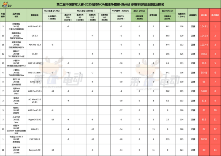 蘇州站智駕大賽,小米YU7擺脫墊底,魏牌藍山“意外”第二,阿維塔12成功衛(wèi)冕!