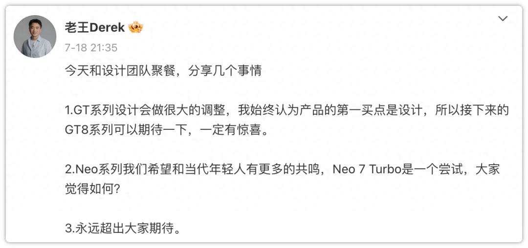 說起性價比品牌的旗艦機型,歷來給人的感覺就是沒那么注重設計,不過隨著市場競爭加劇,這個局面或將得到改變,最近真我副總裁發帖稱:“GT系列設計會做很大的調整,我始終認為產品的第一買點是設計,所以接下來的GT8系列可以期待一下,一定有驚喜。”