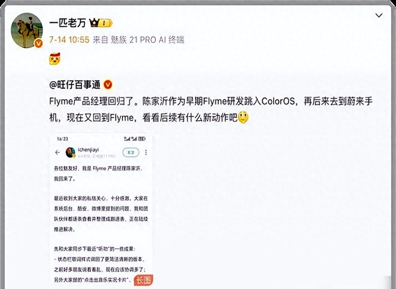 Flyme老將回來搞系統,當年ColorOS和蔚來手機都干過,經驗足。