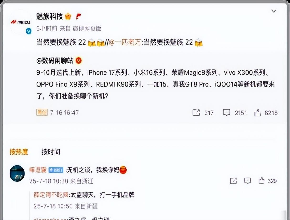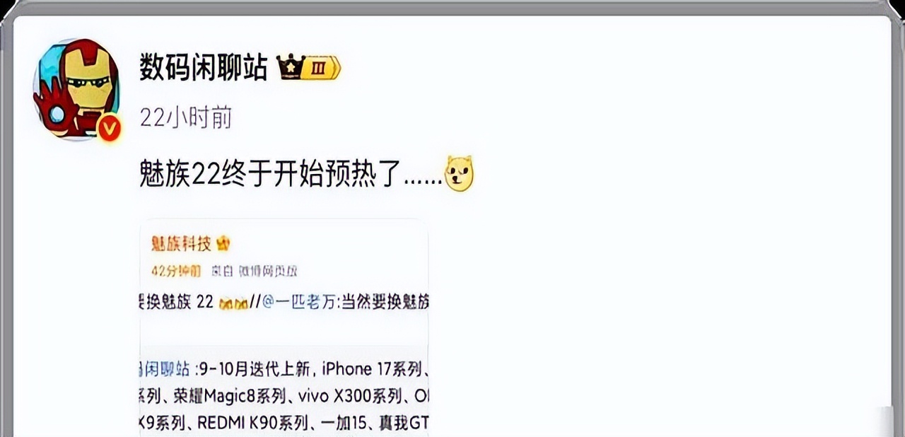 這次魅族高管組隊營銷也挺溜,市場總監萬志強在爆料貼下帶頭喊“換魅族22”,官微秒變復讀機,數碼博主順勢實錘預熱。
