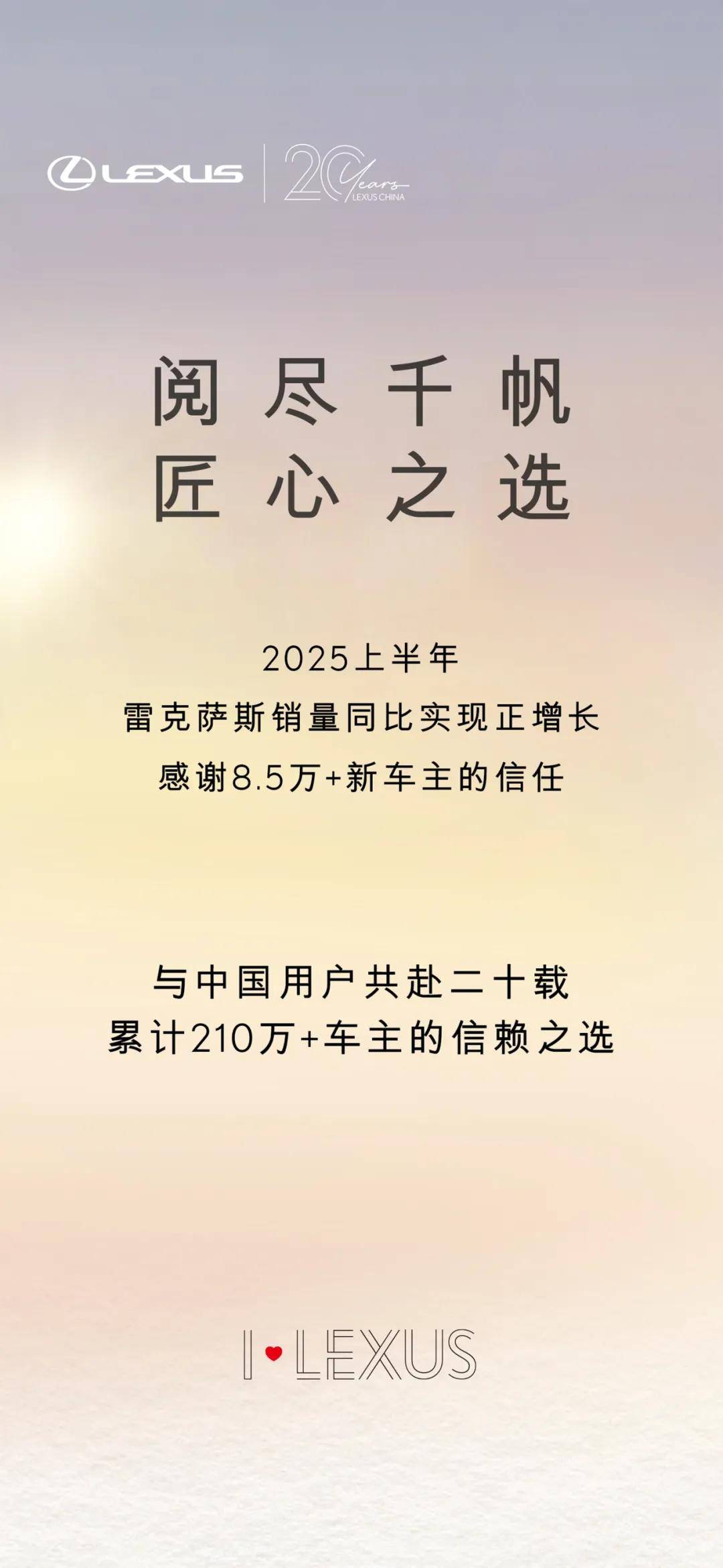今年是雷克薩斯進(jìn)入中國市場的20周年。雷克薩斯憑借與眾不同的進(jìn)口身份、匠心品質(zhì)形象,已經(jīng)贏得超210萬中國消費者的青睞。即使在競爭激烈的上半年,雷克薩斯在華銷售超8.5萬輛,成為唯一保持同比正增長的進(jìn)口豪華車品牌。眼下,雷克薩斯新能源項目已經(jīng)開工,能否進(jìn)一步提升雷克薩斯在中國市場的競爭力,獲得更多市場份額,有待市場檢驗。