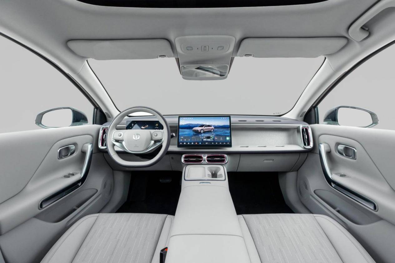 內飾方面,該車同樣圍繞年輕人的喜好來打造, 整體布局很簡潔,中控臺區域并未配備實體按鍵,全液晶儀表是8.8英寸、中控屏是14.6英寸,并搭載高通驍龍8295P的車規級芯片,車機系統是Leapmotor OS 4.0 PLUS,支持3D靈動桌面、智慧卡片等功能,而且還接入了AI語音大模型,深度融合通義千問以及DeepSeek大模型。