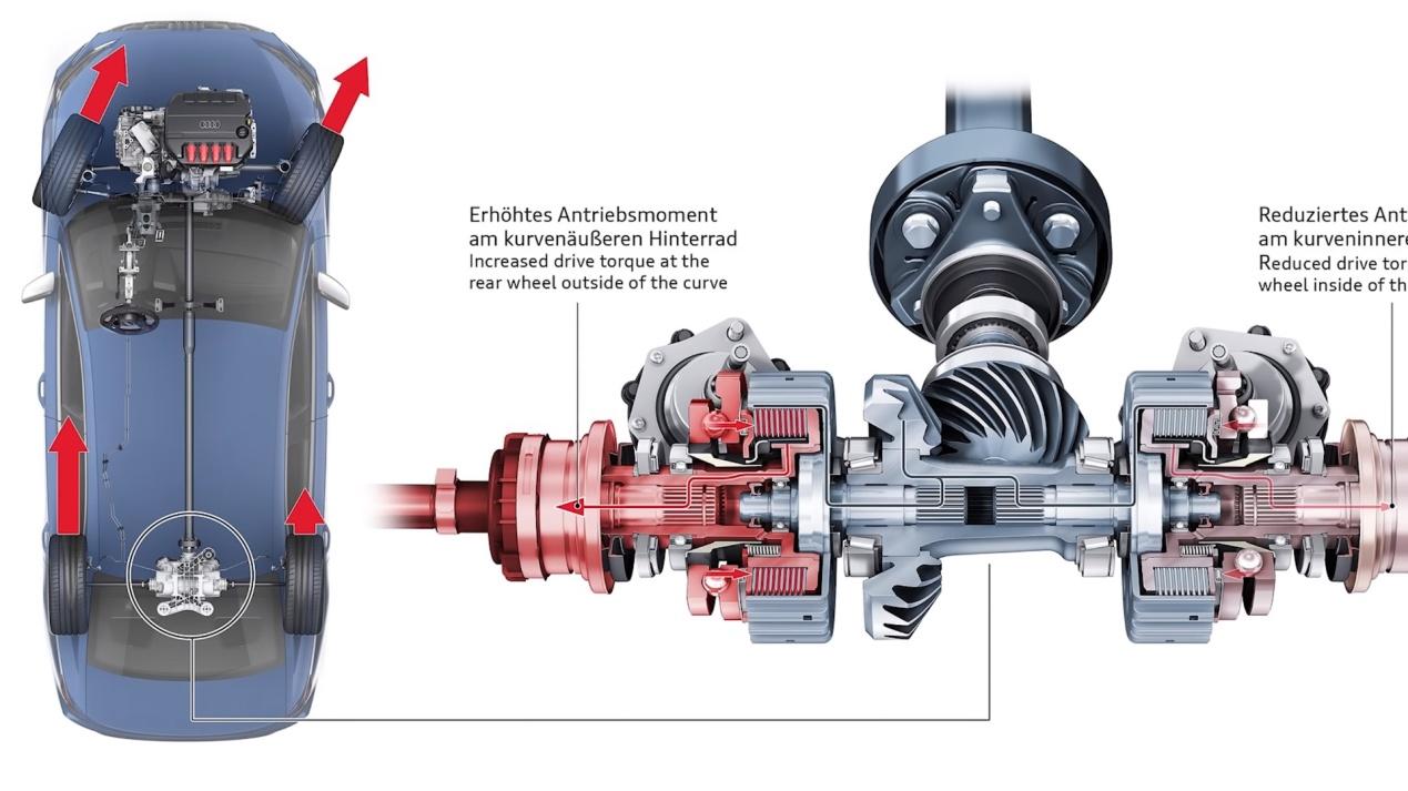 首先是它搭載了新的扭矩分配差速器,令人震驚的是,這套新的扭矩分配差速器是從它的大哥奧迪RS3上直接搬過(guò)來(lái)的,它可以讓發(fā)動(dòng)機(jī)的動(dòng)力單獨(dú)傳遞到新款S3的每一個(gè)后輪,也就是說(shuō)發(fā)動(dòng)機(jī)的動(dòng)力可以100%的全部傳輸?shù)阶蠛筝喕蛘哂液筝啠@就使得新款S3的轉(zhuǎn)向更加的靈活和敏捷,駕駛起來(lái)更偏向后驅(qū)車(chē)的感覺(jué)。