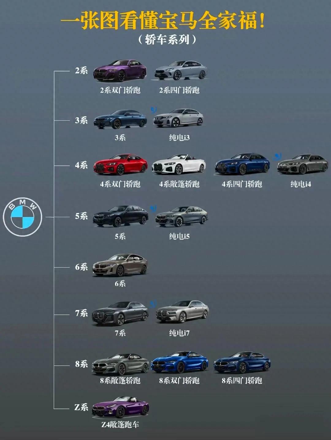 從入門 2 系雙門 / 四門轎跑,到經典 3 系 + 純電 i3,再到 4 系敞篷、四門轎跑 + 純電 i4,5 系 + 純電 i5 商務范拉滿,6 系、7 系 + 純電 i7 奢華進階,8 系敞篷 / 雙門 / 四門轎跑顏值炸裂,Z 系敞篷跑車直接把浪漫拉滿!預算不同需求不同,總有一款戳中你