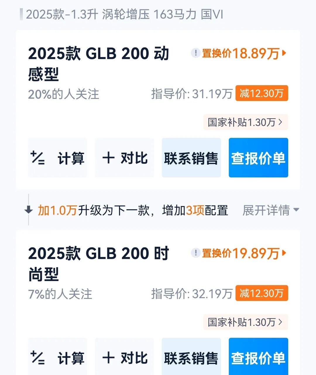聽說現在GLB最便宜的能到18.89萬,頂配也不過24萬多。對比以前三十多萬的指導價,差價能有十萬八萬。銷售說現在優惠力度大,和奧迪Q3、寶馬X1差不多價位了。不過奔馳標還是挺吸引人,尤其對剛工作一兩年的年輕人來說。