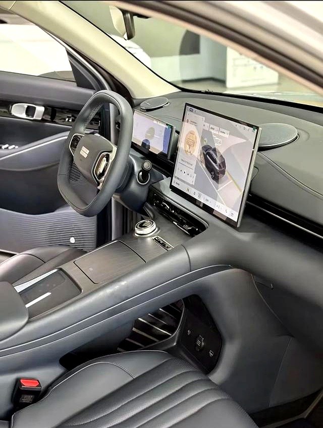 按常理后排得擠成罐頭,吉利把地板掏了個洞,塞進一塊CTB電池,腳底下空出兩拳。