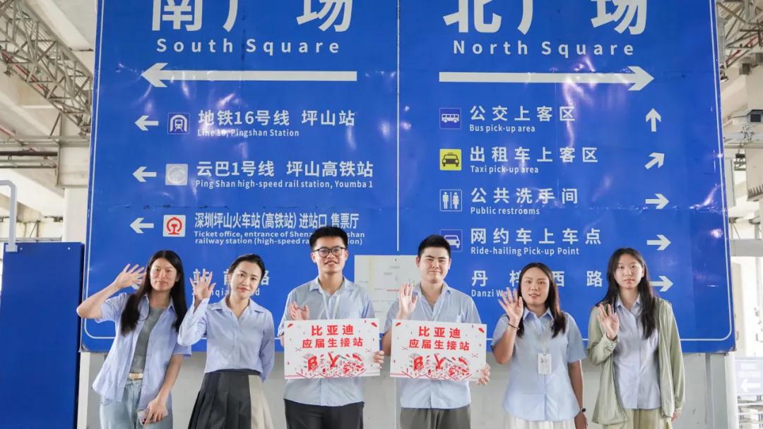 比亞迪接站團(tuán)隊(duì)親自到火車站接站應(yīng)屆生,后續(xù)在工作人員的帶領(lǐng)下辦理入職、做體檢,餐廳還設(shè)置了應(yīng)屆生專屬窗口,吃飽喝足后搭乘班車直達(dá)宿舍區(qū)。