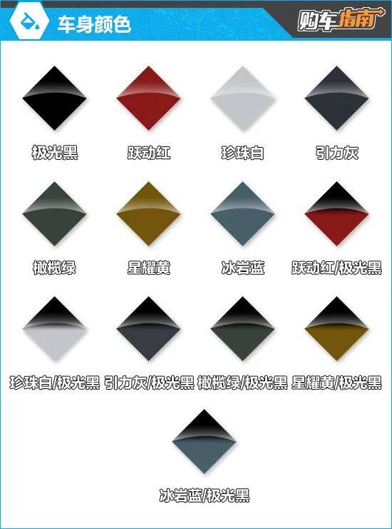 車身顏色方面,新車不僅提供包括橄欖綠、冰巖藍、星耀黃和珍珠白在內的7種單色車身配色;除1.5L CVT時尚版外,另外7款車型還有6種雙色車身可選。從實際效果來看,冰巖藍和躍動紅顏值出眾,消費者可以優先考慮。