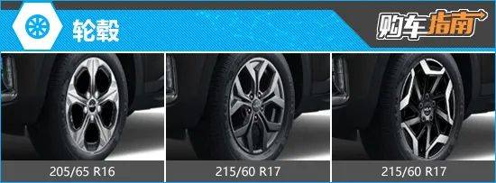 輪轂方面,新車提供三種可選。其中,1.5L CVT時尚版和1.5L CVT舒適版采用16英寸五輻輪轂,匹配205/65 R16規格輪胎;其他車型配備17英寸輪轂,匹配215/60 R17規格輪胎,但輪轂樣式有所不同。