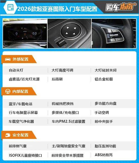 綜合來看,如果您正在關注2026款起亞賽圖斯,那么1.5L CVT尊貴版在購買時可優先考慮。