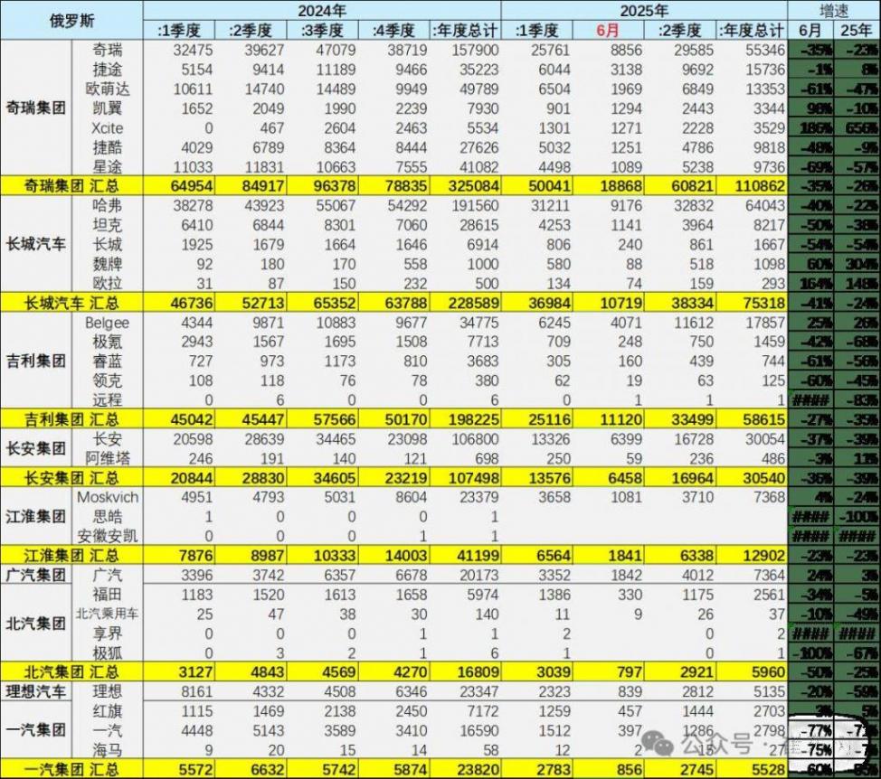 2025年6月俄羅斯車市分析-自主車企份額57%