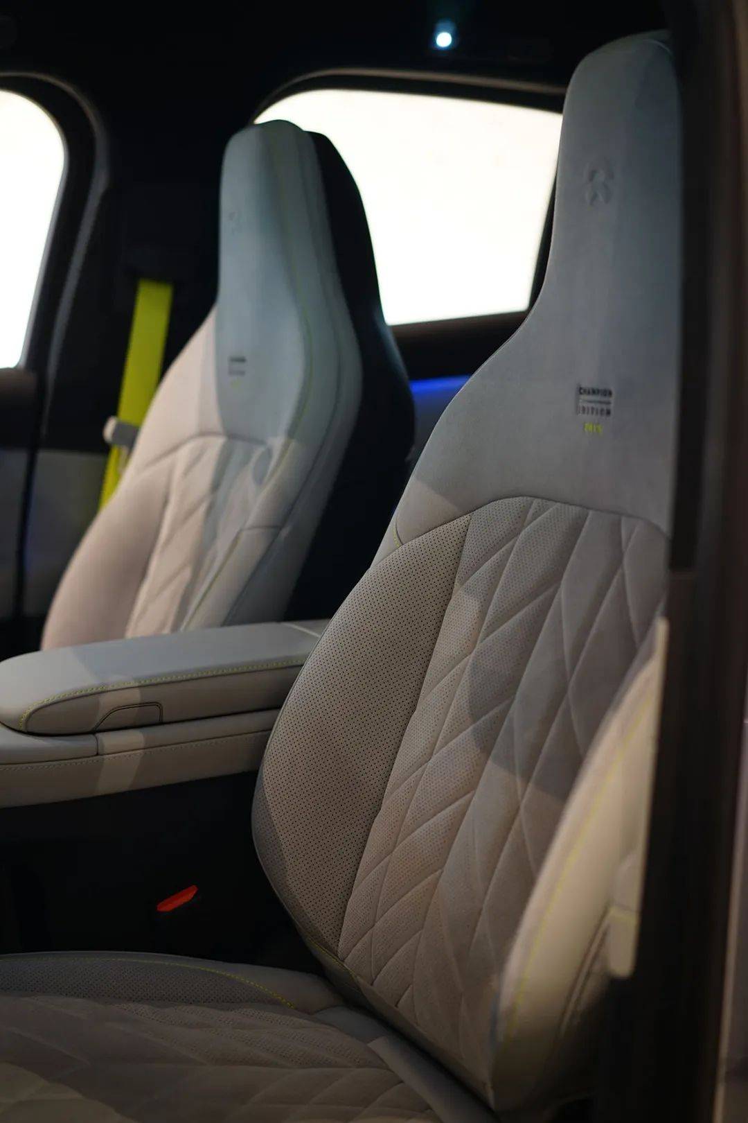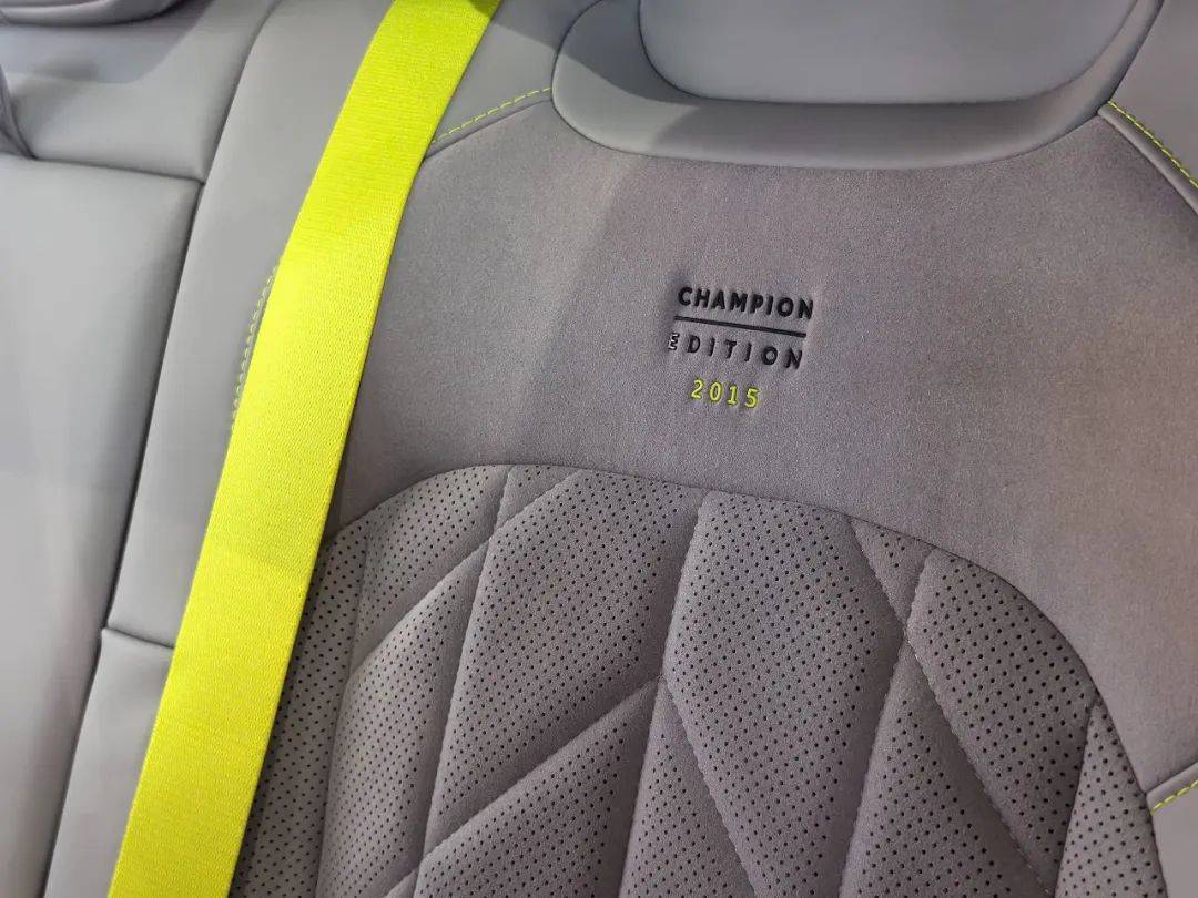 我還發(fā)現(xiàn)了EC6冠軍紀(jì)念版的專屬設(shè)計(jì),那就是競速綠安全帶,高性能車常以撞?安全帶強(qiáng)化運(yùn)動基因,EC6冠軍紀(jì)念版的競速綠安全帶與外觀卡鉗配色呼應(yīng),延續(xù)FE賽?的?彩記憶,成為改裝愛好者眼中的“點(diǎn)睛之筆”。此外,競速綠還出現(xiàn)在縫線上。