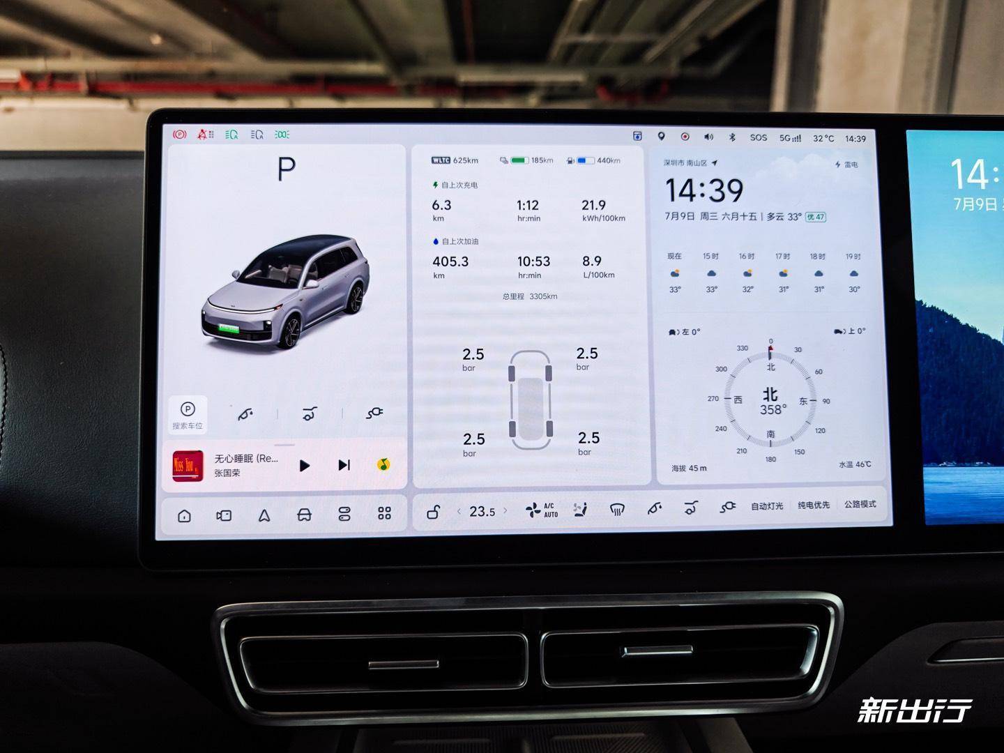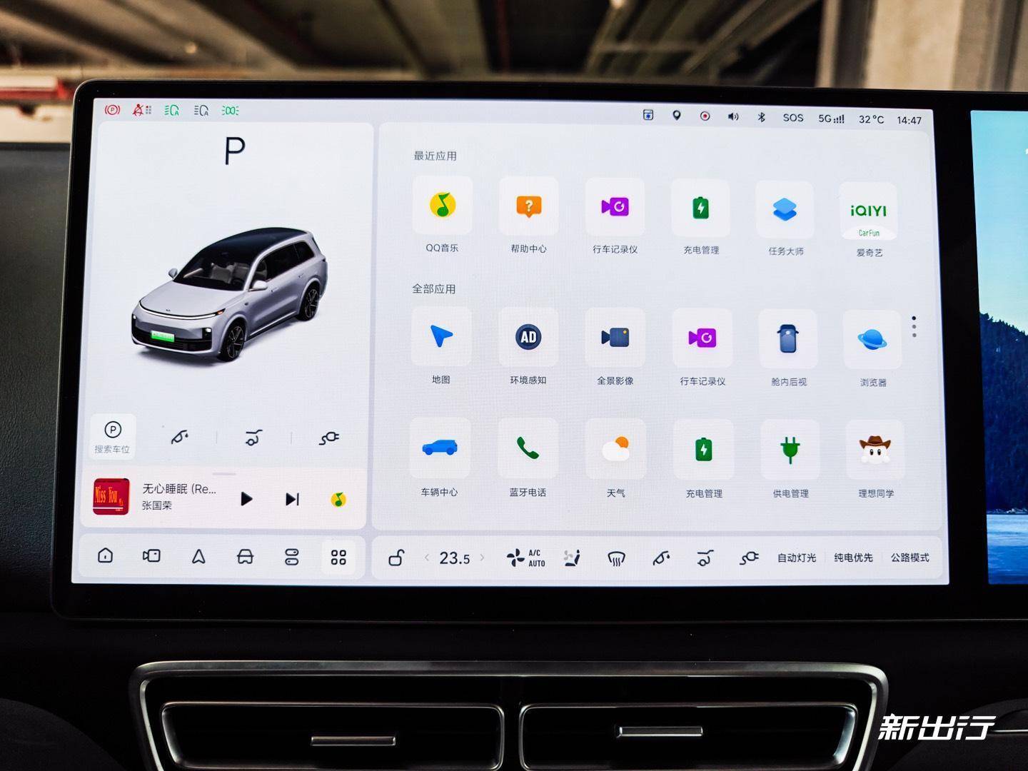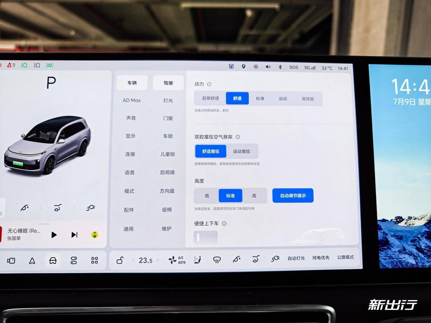 最后是后艙屏。L9 智能煥新版的后艙屏其實(shí) UI 上是和副駕屏基本一致的,約可以看成是一塊放大的副駕屏,