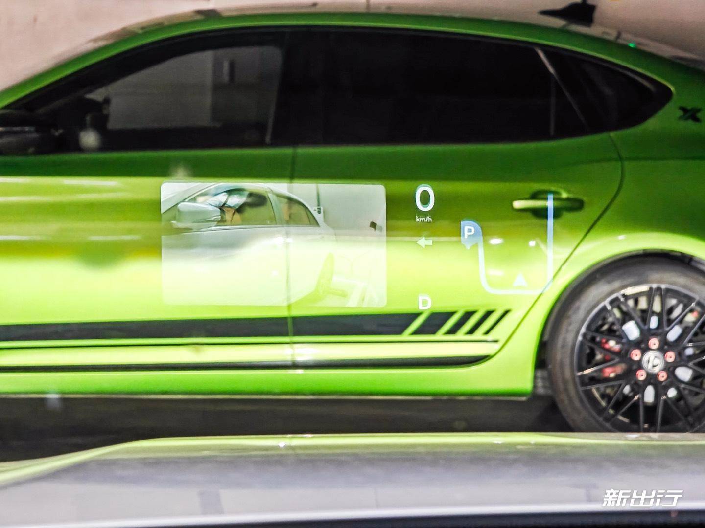 我個(gè)人比較喜歡的是理想這塊 HUD 在導(dǎo)航時(shí)的輔助,中間顯示 SR,左側(cè)顯示導(dǎo)航以及紅綠燈讀秒、擁堵情況,在行車時(shí)獲取信息很方便。此外,行車打燈時(shí)顯示側(cè)后方影像作為虛擬后視鏡,也是一個(gè)便于觀察路況的功能。