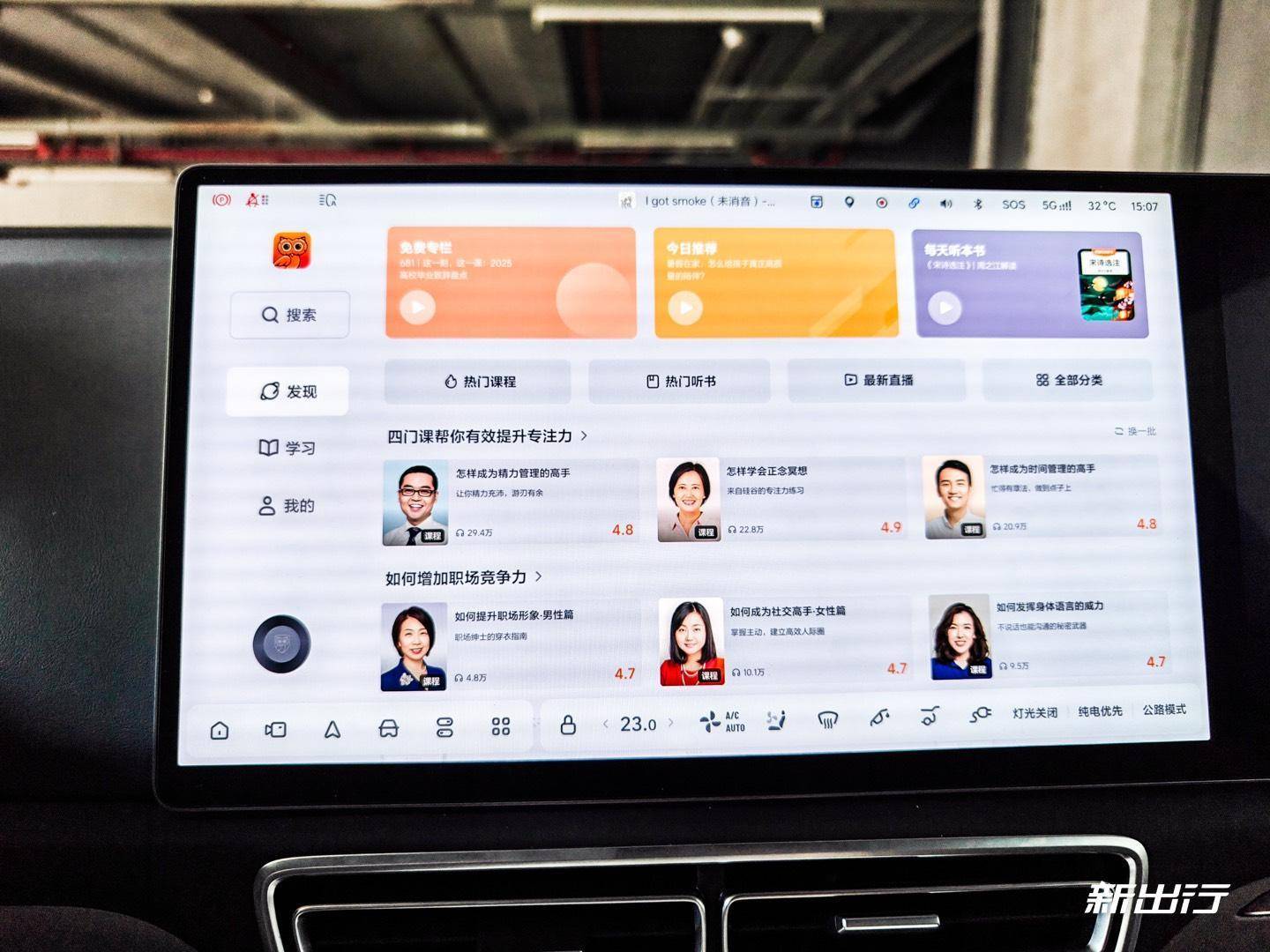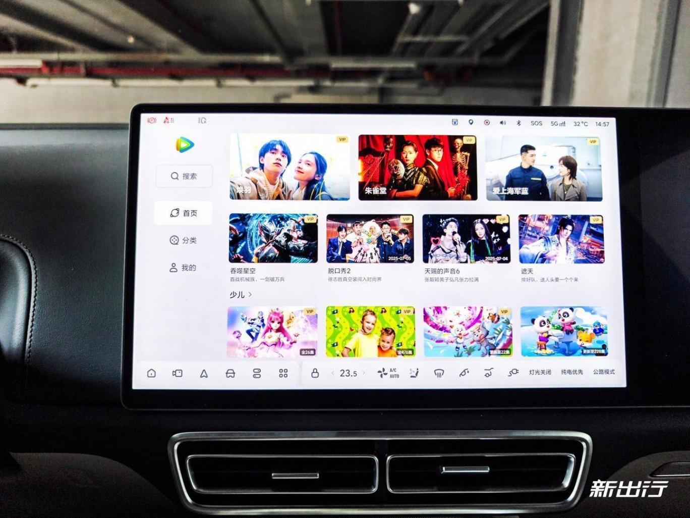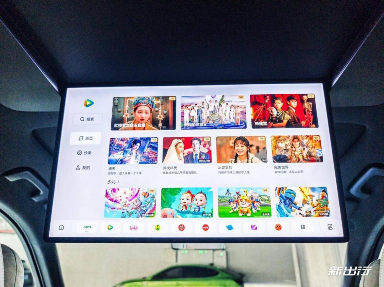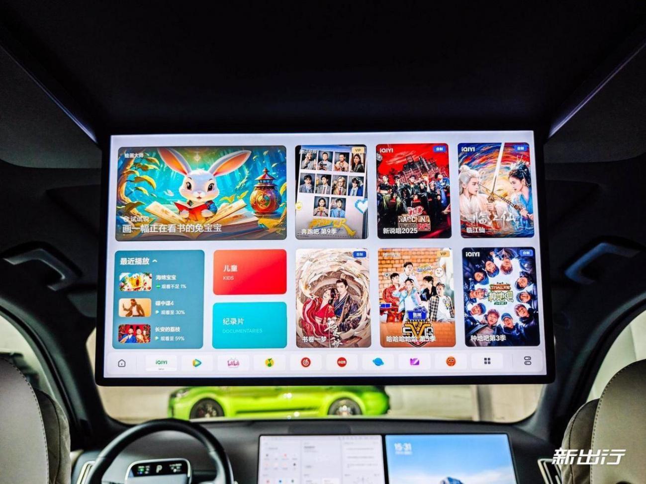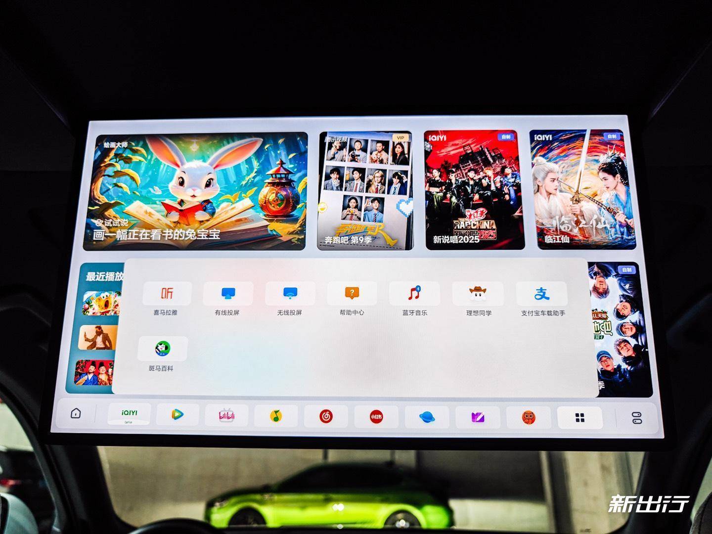 輕輕一點(diǎn)即可進(jìn)入副駕屏的主界面。副駕屏的職責(zé)主要就是娛樂和影音,所以主界面默認(rèn)就是推薦各個(gè)應(yīng)用的熱門視頻,以及理想的 AI 繪畫功能。