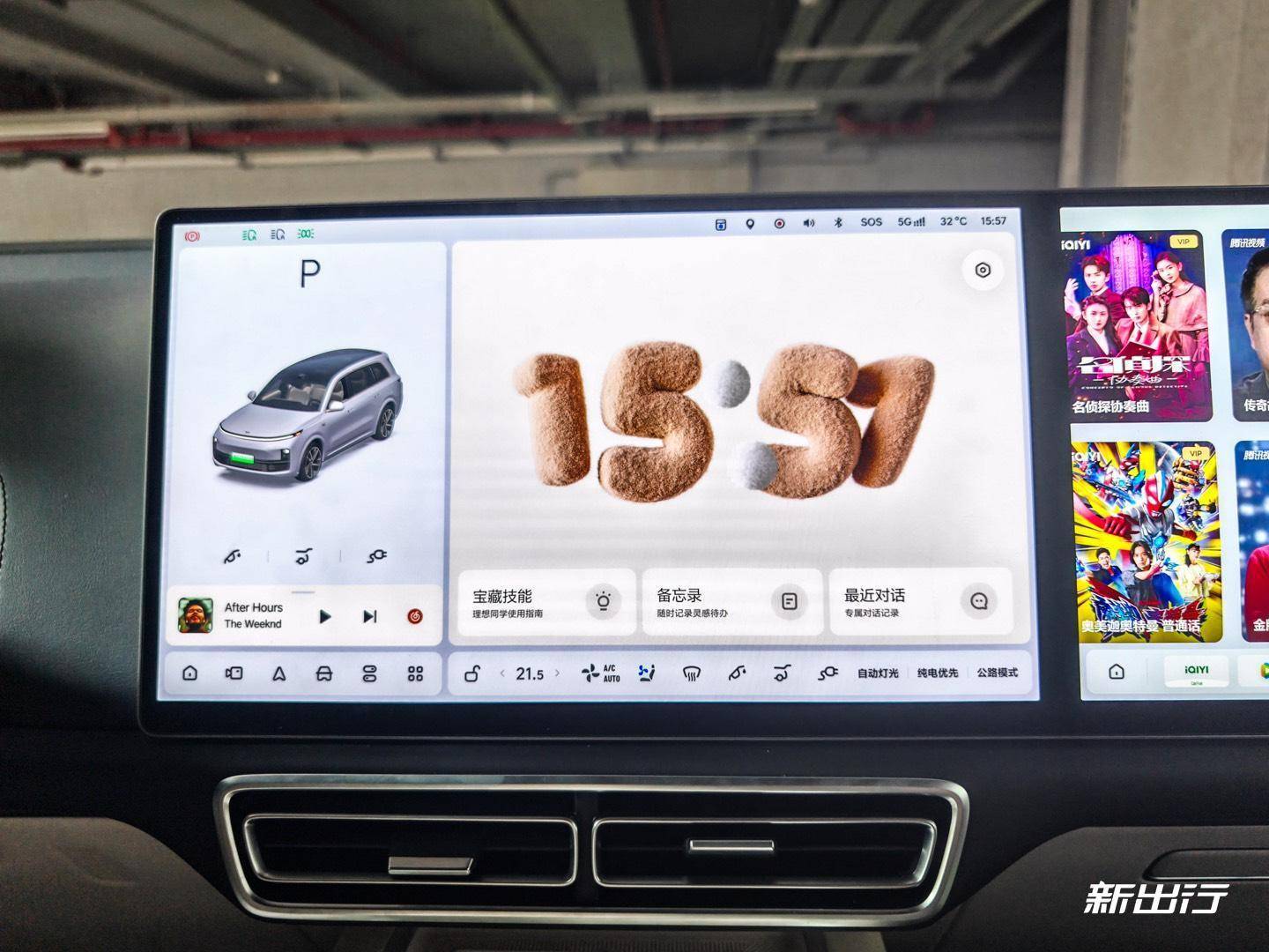 首先是硬件層面,我們測(cè)試的理想 L9 是 L 系列中的“天花板”,因此用得也是系列中最好的硬件,中控屏和副駕屏均為 15.7 英寸的 OLED 屏,分辨率等效達(dá)到了 3K。此外,新車座艙由高通驍龍 8295P 驅(qū)動(dòng)。后艙屏的尺寸為 21.4 英寸,分辨率同樣達(dá)到 3K。