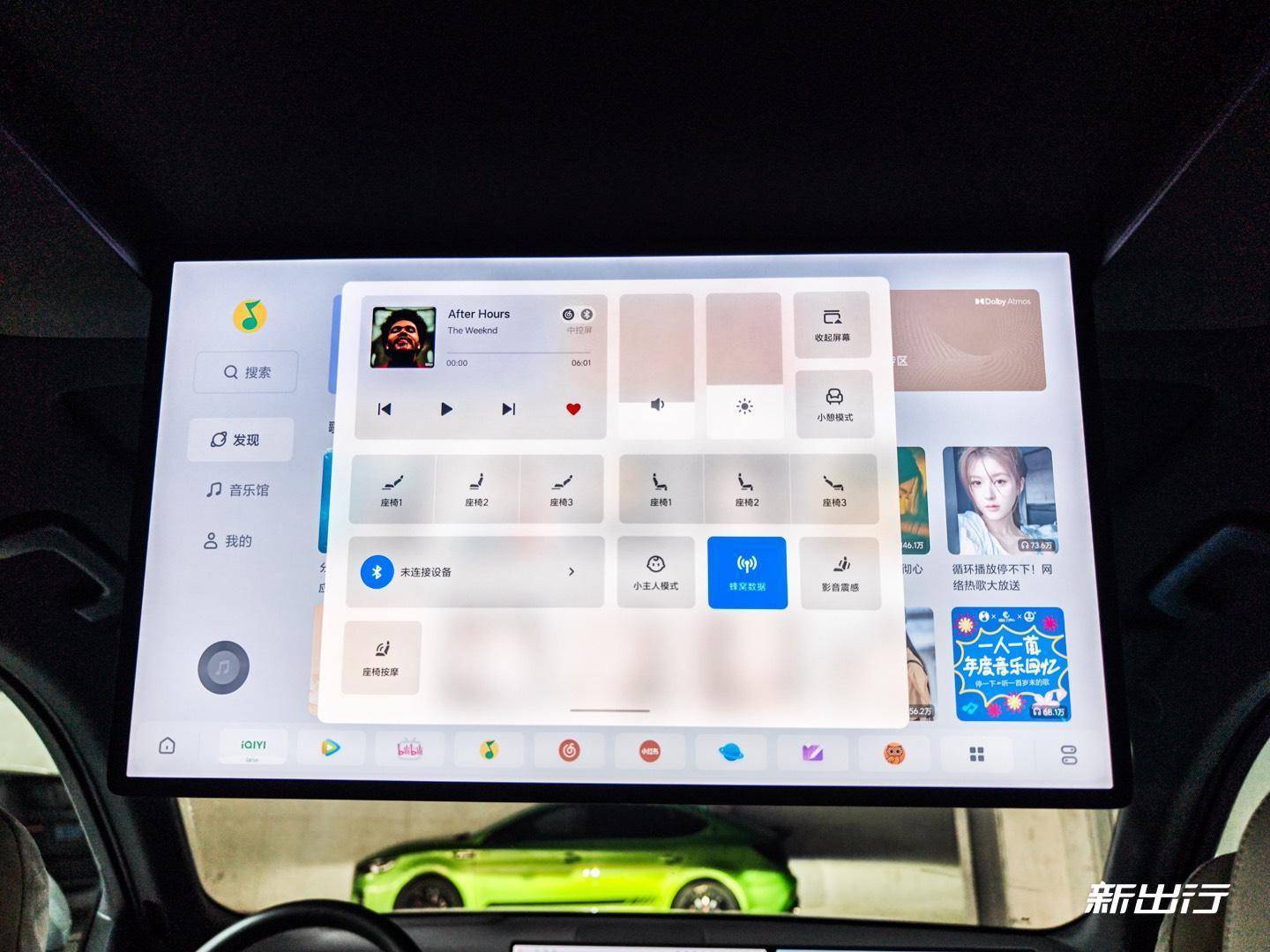 副駕屏下拉也同樣是控制中心,可以快捷切換副駕座椅記憶姿態(tài)、復(fù)位座椅或者是開啟小憩模式。底部 DOCK 欄除了快捷開啟應(yīng)用之外,還能快捷開啟座椅按摩、調(diào)節(jié)空調(diào)或是座椅通風(fēng)/加熱,和主駕屏一樣點(diǎn)按去起來都是比較符合用戶的第一直覺的。