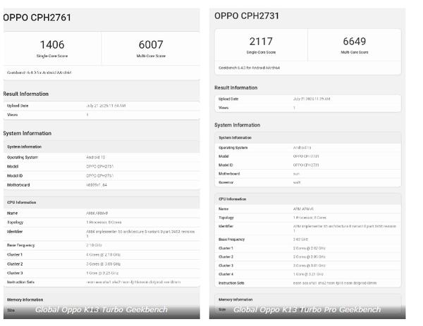 7月21日,OPPO在中國市場發布了OPPO K13 TURBO系列。而如今,CNMO了解到,該系列或將登陸海外市場,搭載驍龍和天璣旗艦芯片的兩款K13 Turbo系列新機已現身Geekbench跑分平臺。