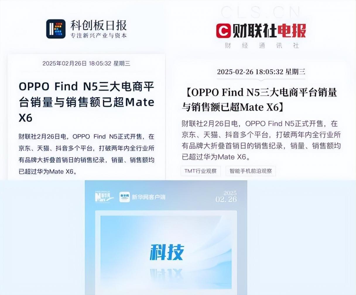 OPPO的Find N5,這款折疊屏手機,直接刷新了行業記錄。不是某個區域的記錄,是全行業所有品牌大折疊的首銷日銷量、銷售額雙紀錄……備貨量聽說已經是上一代Find N3的兩倍還多,具體數字是2。2倍,結果還是不夠賣。線上賣得更夸張,是Find N3的4倍左右。