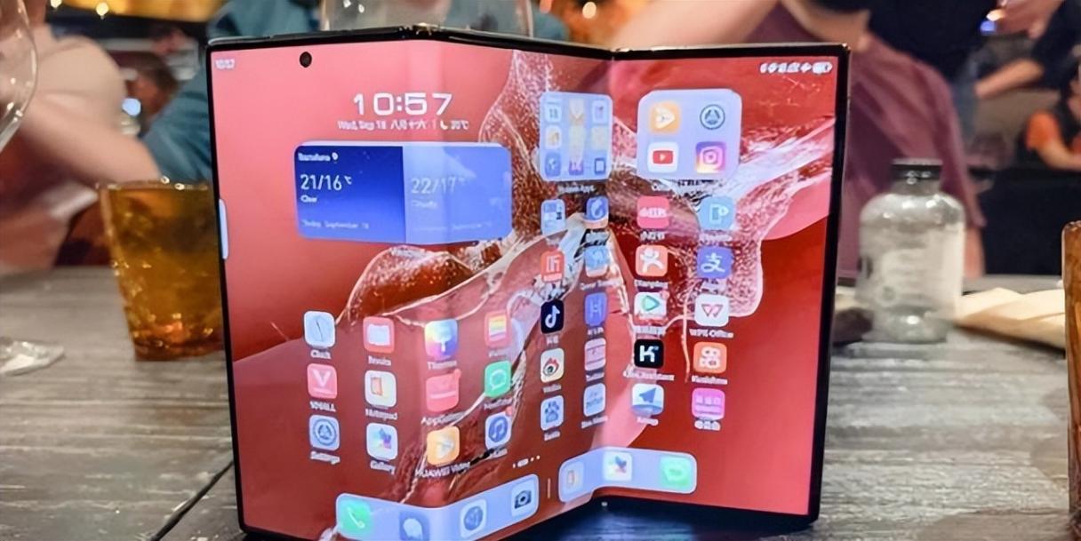 上一代的華為三折疊屏手機,已經可以打衛星電話了,這在沒有手機信號的地方是個能救急的功能。但它有個限制,就是必須把手機三個屏幕完全展開才能用。