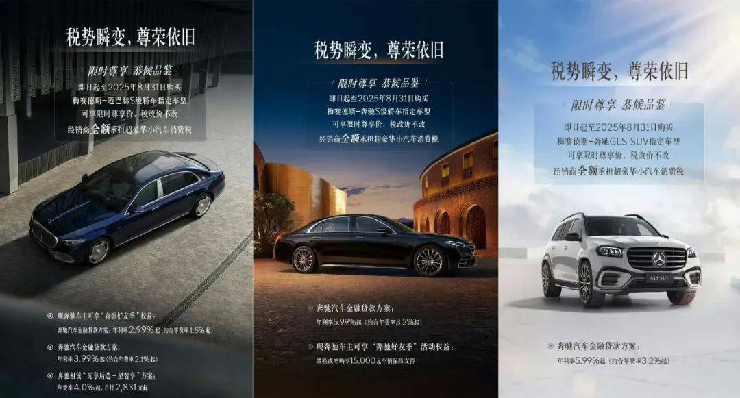 的經銷商也放出了類似的政策,購買邁巴赫、奔馳S級、指定車型,在8月31日前,奔馳的經銷商將全額承擔新增豪車消費稅。