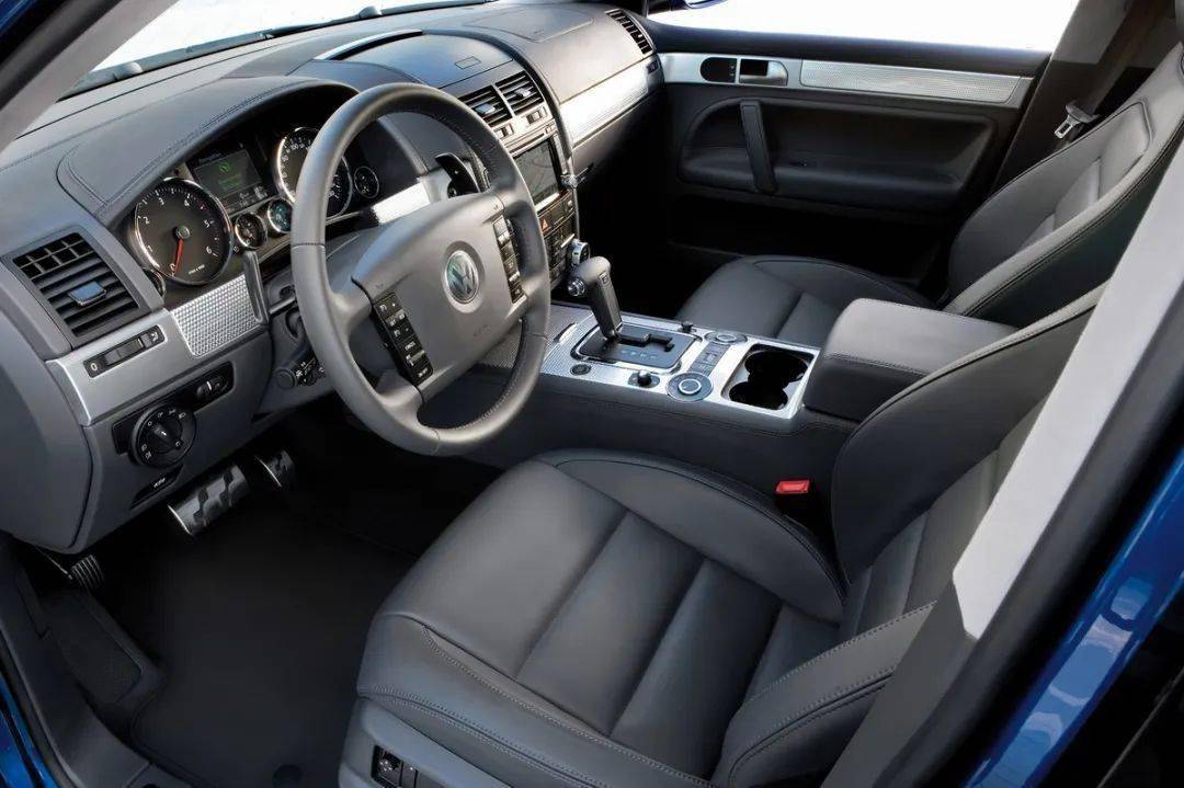 為應對V10引擎的強勁動力,途銳R50升級了運動化懸掛系統(更換運動避震器與防傾桿),并配備Driving Dynamics性能化氣壓懸吊套件(支持手動/自動調整車身高度,運動模式下可降低20mm,減少側傾)。途銳R50的內飾延續了大眾途銳的豪華基調,但融入了R系列的運動元素。座椅為Nappa真皮包裹,包裹性與支撐性極佳,頭枕、迎賓踏板、排檔桿等處均有“R50”標識;中控采用經典機械式儀表盤(中間帶液晶信息屏)、大尺寸觸摸屏、780W Dynauzer音響系統。
