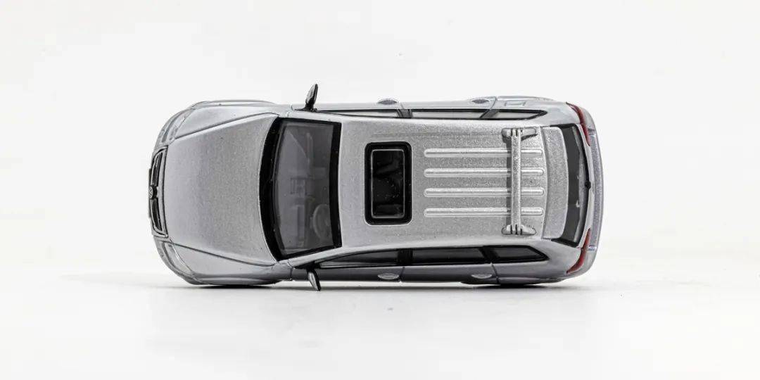 先看外形,雖然Shadow模型主打性價比,但是這款途銳在外形上還原的還算到位,特別是R50的軟體包圍;我們這次試玩的是銀色版本,模型的漆面整體表現還行;模型車頂還有獨立分件的天窗和橫向的行李架,模型的車門把手為浮雕刻畫,而車身縫隙還是有點肉;車輛的后視鏡也是獨立分件,車窗的邊框為黑色,模型的車頂稍微顯厚,但搭配上車頂行李架也顯得協調很多。