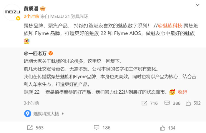 或許是為了平息魅友的怨氣,亦或是不讓魅友等得那么辛苦,昨天傍晚,星紀魅族中國區CMO萬志強在微博上語重心長地說道: