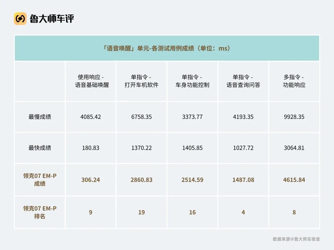 綜合來看,領克07 EM-P的車機在「語音喚醒」測試板塊的整體表現是最好的。