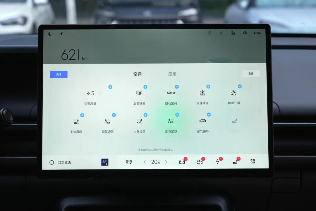 底部的DOCK欄同樣支持多種功能自定義,包括極速升降溫、座椅通風、加熱等。