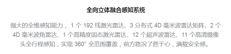 其中,3顆全車環(huán)繞式的4D毫米波雷達(dá)能夠提供更多的安全冗余。這多出來的1D是垂向的感知,能更從容地應(yīng)對“加塞”或者“別車”這種惡劣的場景,提升安全性。
