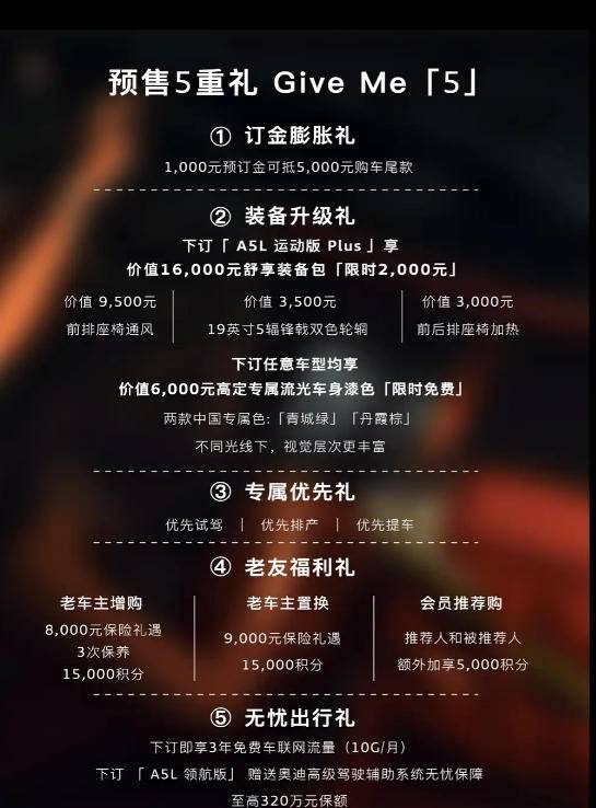 此次一汽奧迪為A5L準備的預售權益,堪稱“多維度讓利”。除了三款車型的先享禮遇價本身就具備競爭力,官方還推出了“訂金膨脹”福利——現在通過奧迪個性化定制平臺下訂,1000元預訂金可直接抵扣5000元購車尾款,相當于憑空省下4000元。對于打算入手的消費者來說,這無疑是“早訂早劃算”的直接動力。