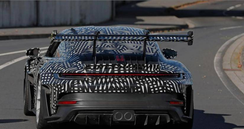 雖然目前官方尚未公布新車的完整參數,但從測試諜照中,已能窺見其為賽道性能量身打造的“硬核升級”。最直觀的變化當屬空氣動力學設計——相比現款車型,新款911 GT3 Cup的前定風翼尺寸明顯擴大,邊緣線條更鋒利,仿佛一對“利刃”隨時準備切割氣流;尾部擾流板的造型也更為激進,角度和面積的調整,顯然是為了在高速行駛時制造更強的下壓力。