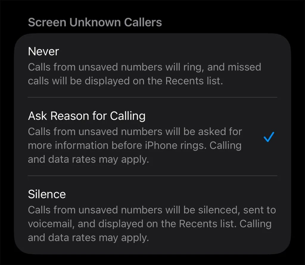 在 iOS 26 Beta 4 更新中,來(lái)電篩選功能目前提供 3 種選項(xiàng),IT之家簡(jiǎn)要介紹如下:
