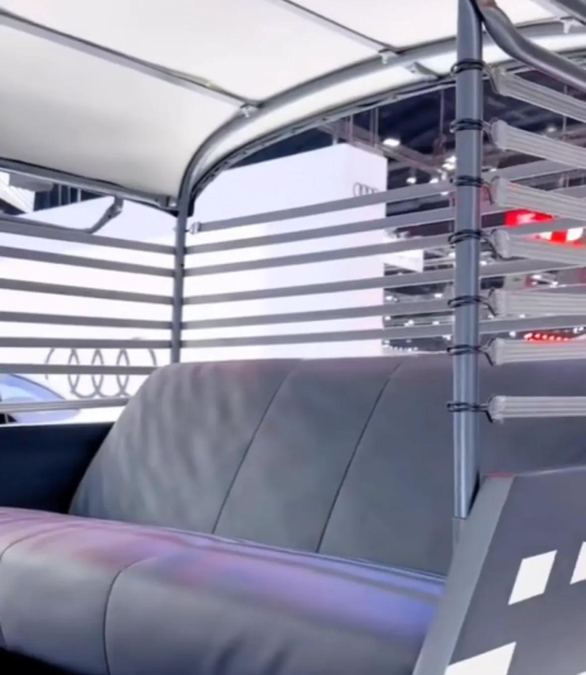 輪到空間利用,奧迪明顯知道老百姓最關心啥。前排單人開,后排寬敞舒服,兩個人輕松坐,專門做了頂棚,沒事還能變“敞篷”,風雨無阻。雨棚材質也夠講究——高強度可拆卸碳酸酯,淋雨不怕,烈日不懼,玩得和進口頂級露營裝備一個路數。