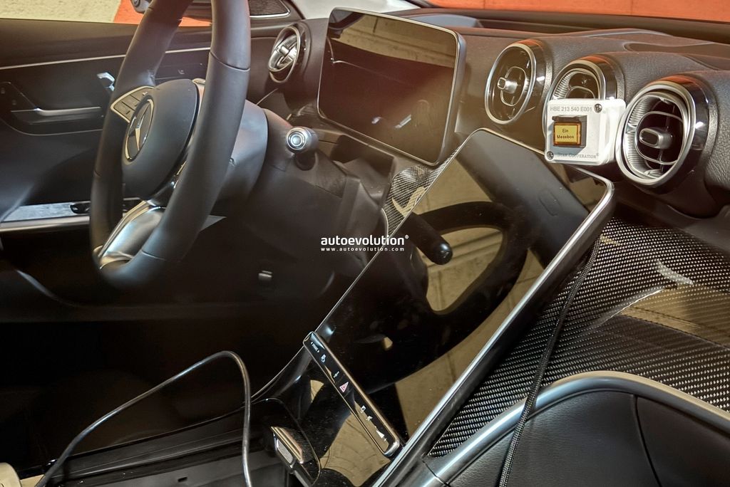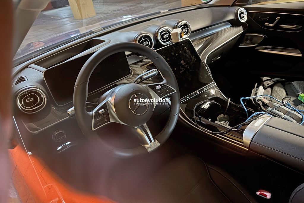 內飾方面,從曝光的圖片來看,新款 C 級轎車變化不大,保留了橫向數字儀表盤和縱向觸摸屏的信息娛樂系統。