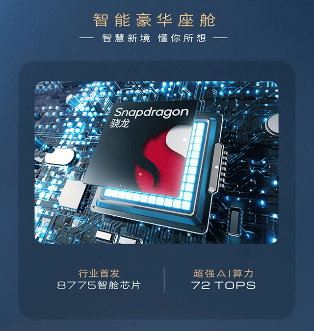 還有人認為,72TOPS的算力并不新鮮,甚至會說“TOPS沒到3位數的只能吃土”。但請不要忘記:SA8775P芯片,雖然是為艙駕一體場景而生,但在至境L7上,SA8775P僅負責智艙域控制器。