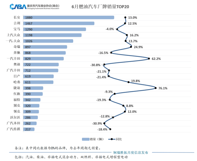6月份,重慶燃油汽車廠牌銷量前二排名依然是長安、,銷量分別為1880輛、1467輛。而寶馬則取代了上月第三名的上汽大眾,其銷量為1290輛。上汽大眾銷量1198輛,排名變成第四。