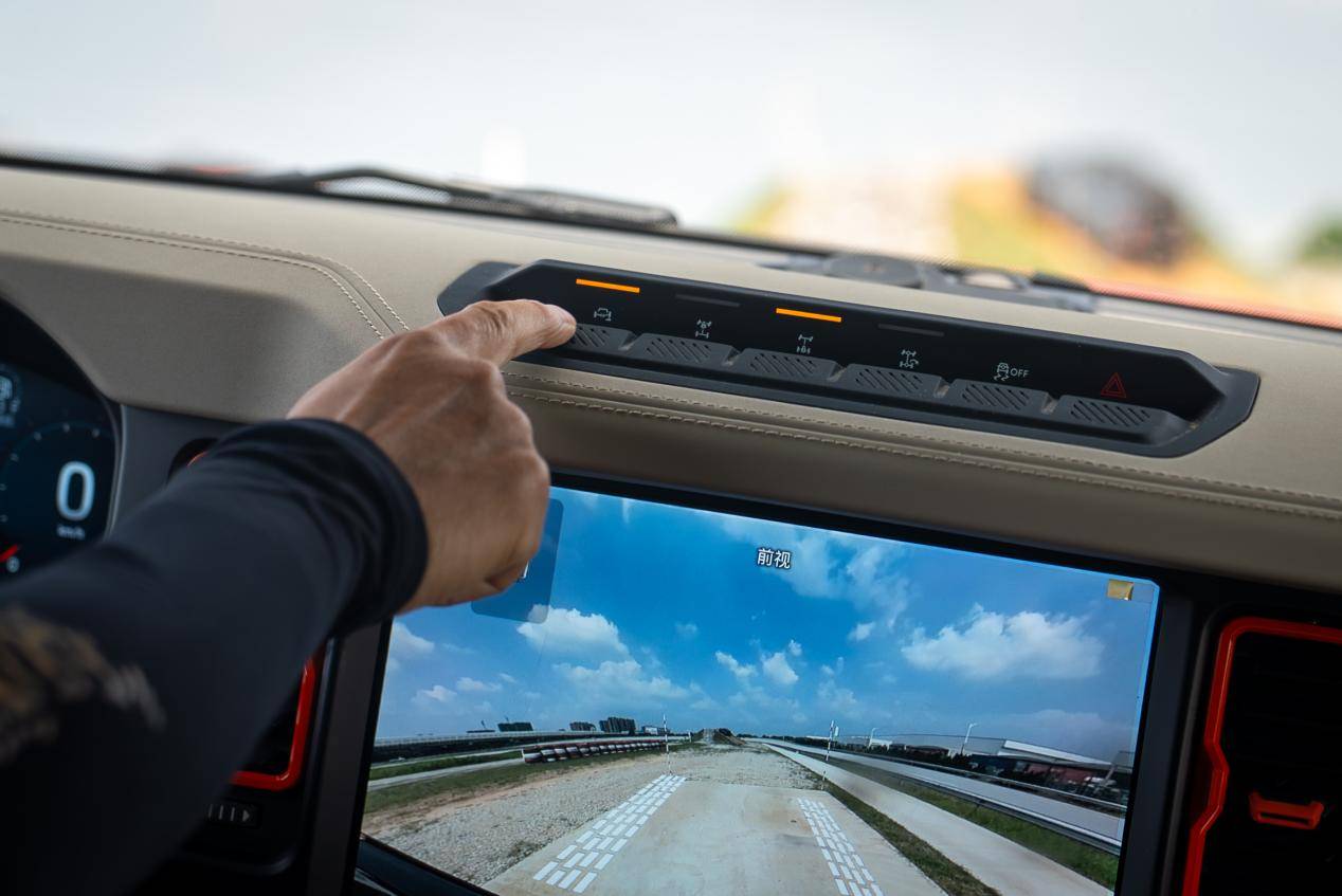 智能輔助功能的加入,則讓模塊化設計的 “易用性” 再上臺階。GOAT 全地形系統提供 7 種模式,360° 全景影像與越野蠕行(2km/h 低速設定)全系標配,即便新手也能從容應對復雜路況。可斷開防傾桿的邏輯尤為智能:32km/h 以下可隨時激活,高速時自動復位,無需停車操作,這種 “低速靈活、高速穩定” 的設定,比早期純機械結構更適應全場景需求。