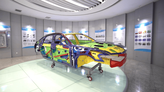 車身骨架是汽車安全的第一道防線。工藝規劃專家薛華告訴汽勢Auto-First,一汽-大眾產品車身關鍵部位,如A柱、B柱、車身橫梁等大量使用高強鋼和熱成型鋼,拿ID.7 VIZZION來說,高強鋼比例達81%以上,熱成型鋼使用占比達到30%以上,這兩項數據可以說達到了行業領先。
